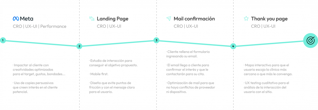 En cada uno de los pasos, se ha optimizado para evitar todos los puntos de fricción que se pueda encontrar el usuario con nuestra comunicación.