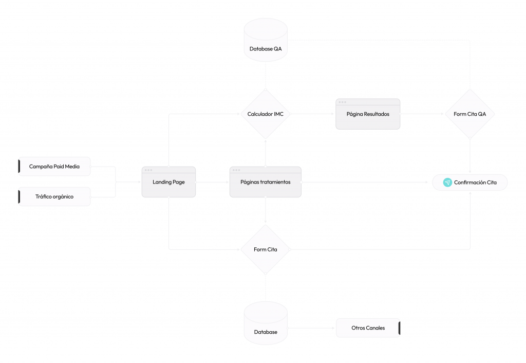 No se cualifican los leads y las métricas eran poco fiables. Diseño poco intuitivo y sin una jerarquía definida. Necesidad de incremento de la cantidad de conversiones.