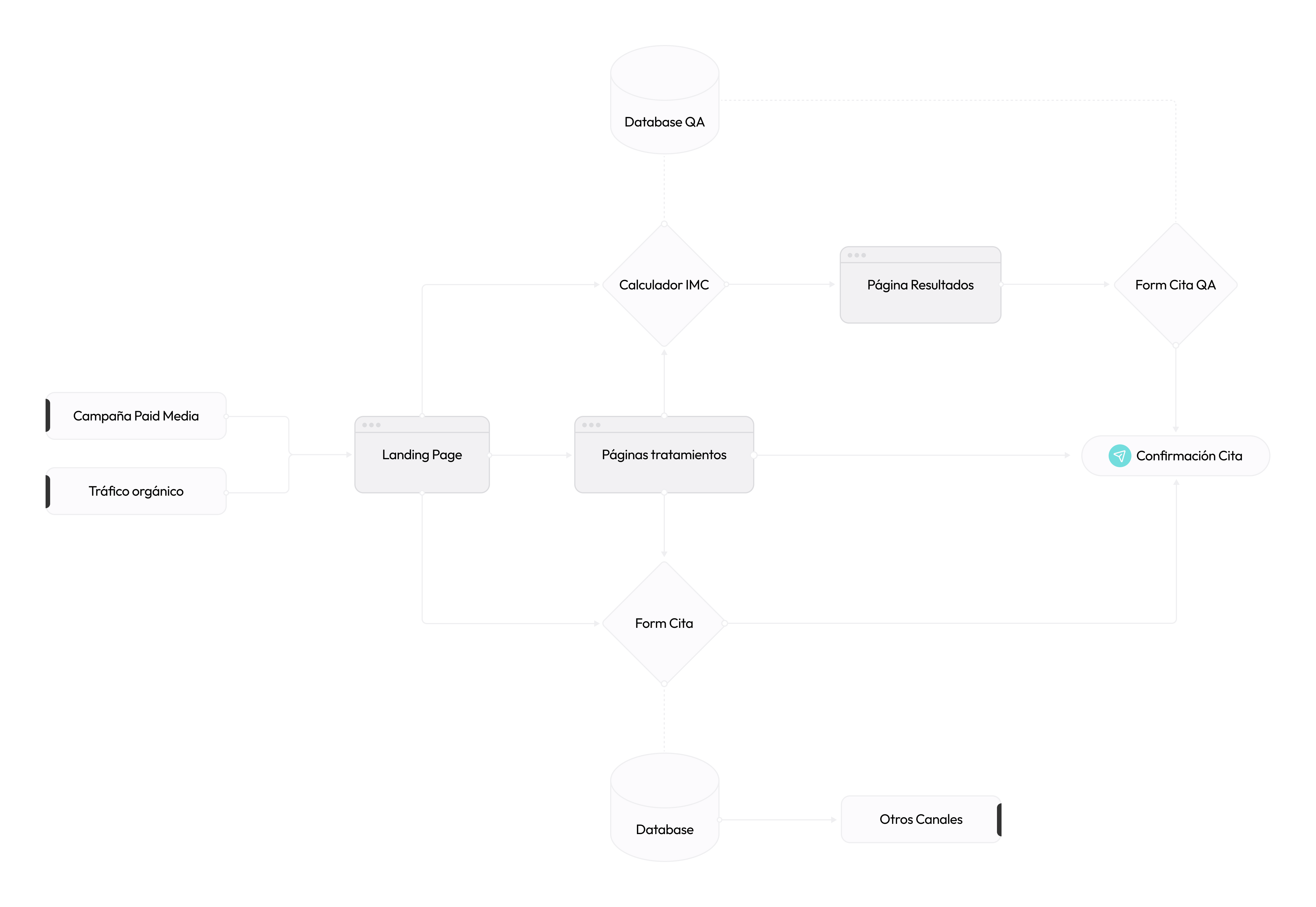 Planteamos el proyecto con un diagrama de flujo para optimizar el customer journey, desde el clic en el banner hasta lograr el objetivo estratégico.