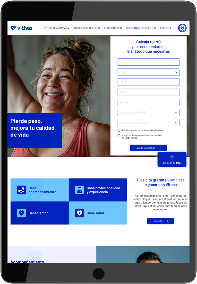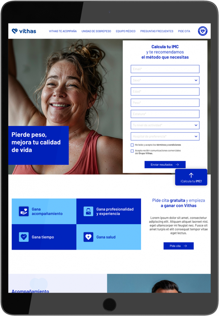 Calculador de IMC como elemento cualificativo. Optimización UX/UI de la landing page.